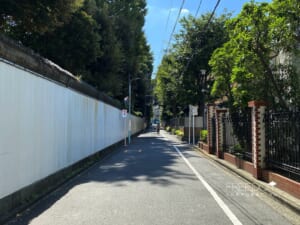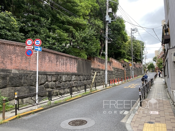 マンションは不忍池から東京大学方面へ登る無縁坂沿いに建っています。そこまで傾斜のきつい坂ではなく、歩道もしっかり分離しているので安心です。南側には重要文化財の旧岩崎邸庭園があり、坂を下ったところには憩いの不忍池が◎