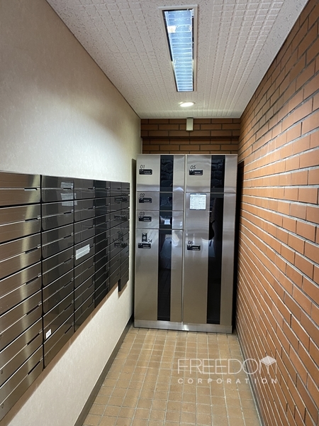 エントランスにはオートロック、奥まったところに宅配ボックスも設置されています。