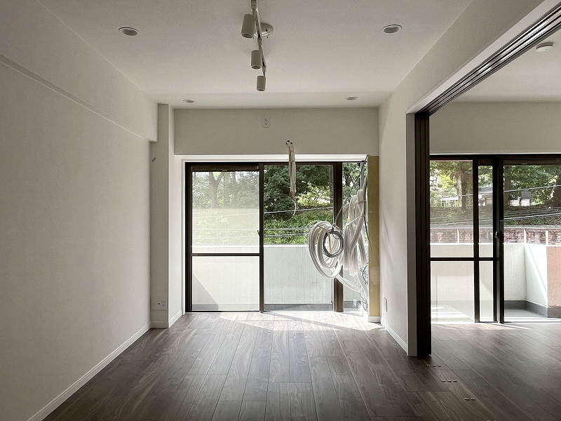 リビングダイニングは陽当たりのよい南向き。洋室2の引き戸を開けて開放的なリビング空間としても良さそうです。