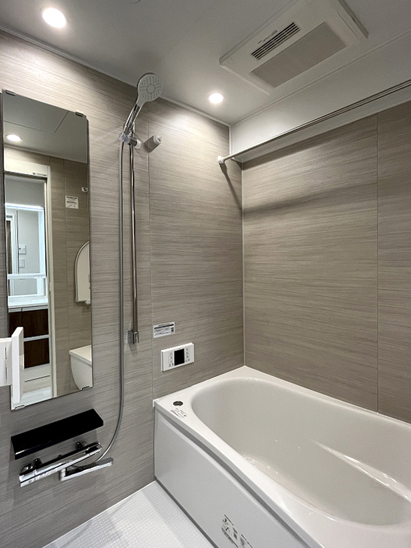 水回りはコンパクトなつくりですが、シンプルなデザインで使い勝手が良さそうです。浴室は1216サイズ。追い焚き機能・浴室乾燥機能が備わっています。