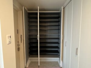 ゆったりとしたアプローチを構えるエントランス。通りから奥まっているためプライバシーが確保されやすく、オートロックなのでセキュリティー面も安心です。エントランス周りには木々や植栽が巡らされ、居住者を優しく迎えてくれます。エレベーター2基、駐車場、トランクルームなどの設備も整っています。外観・共用部ともにメンテナンスがしっかり行われ、大切に住み継がれている様子がうかがえます。