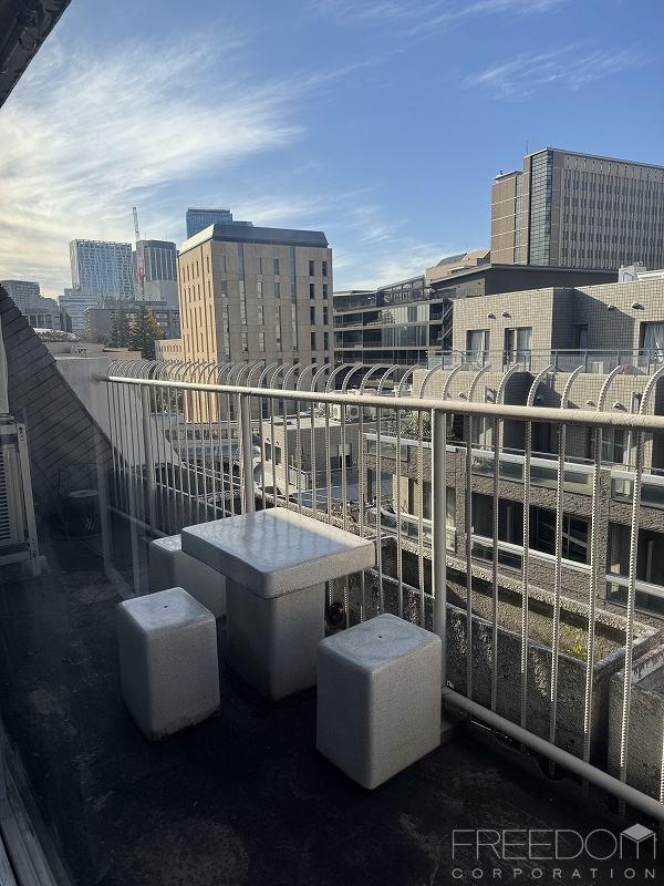 都心でありながら空に開けた眺望と、広いバルコニーがとても魅力的なお部屋です。バルコニーにはプランターボックスがあり、売主様は以前バラを植えられていたそうで、ガーデニングはもちろん、気候の良い季節には外のテーブルでコーヒーを飲んだりなど、様々な使い方が楽しめそうですね。