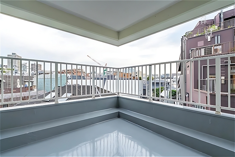 バルコニーは約6帖のゆったりとしたスクエア型。椅子や小さなテーブルを置いて、街の気配を感じながら寛げる心地よいアウトドアスペースです。神宮前の中心地でありながら、視線の抜けが確保されており、開放感も楽しめます。