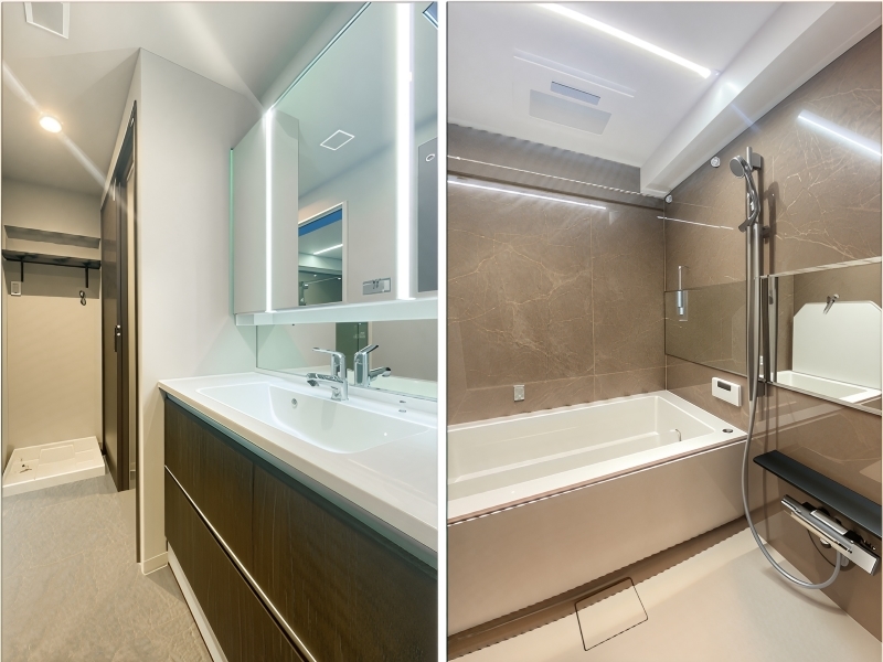 水まわり部分もリニューアル済みで気持ちよくお使いいただけます。バスルームには、浴室換気乾燥機や追焚き機能が備わり、快適なバスタイムを過ごせます。