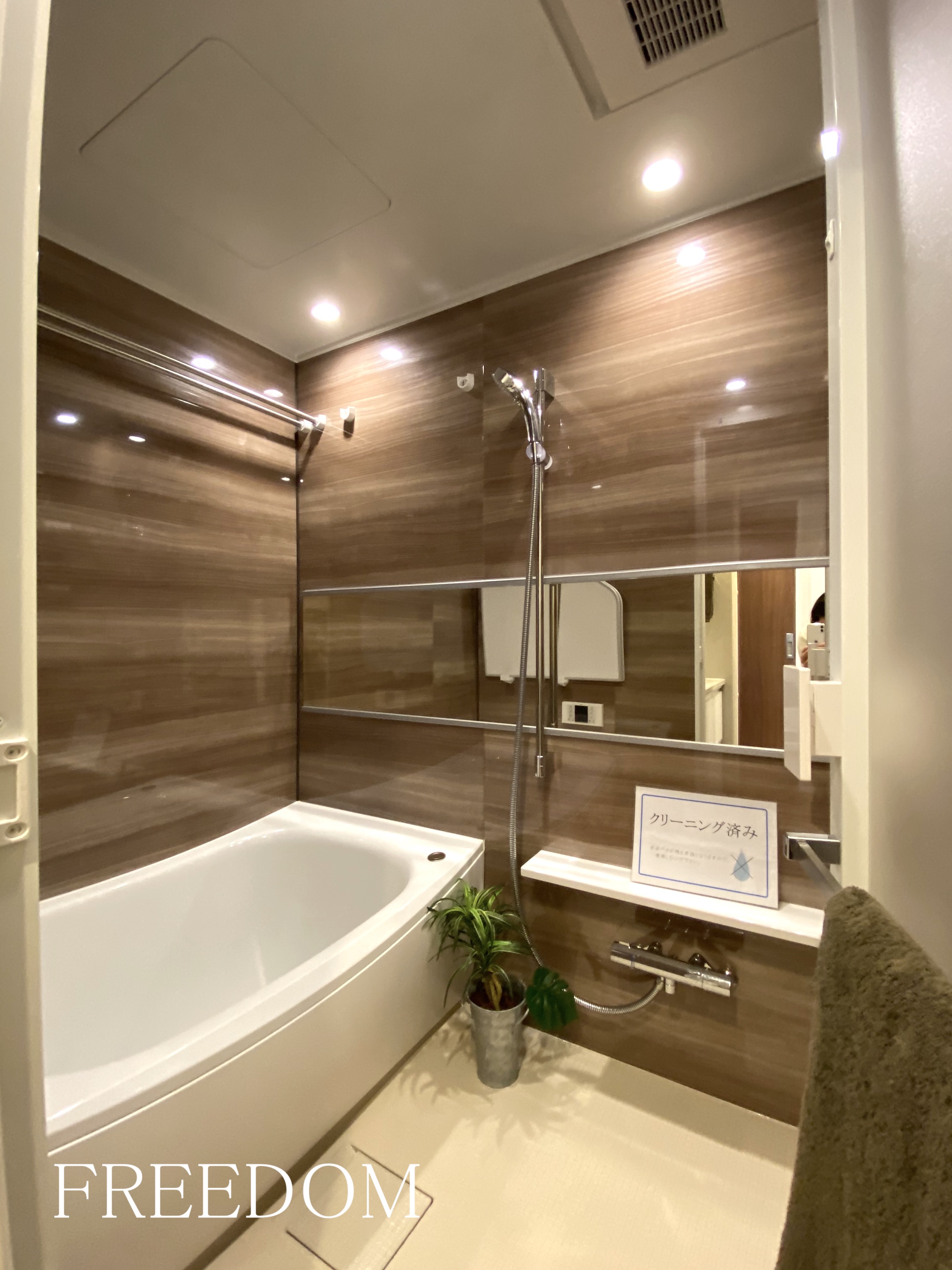 現在空室のため、ゆっくりとご内覧いただけます。家具類はモデルルーム用に設置していますが、シンプルで飽きのこない内装は好感度大です。日当たりも良いので、植物も元気に育ちそうですね。